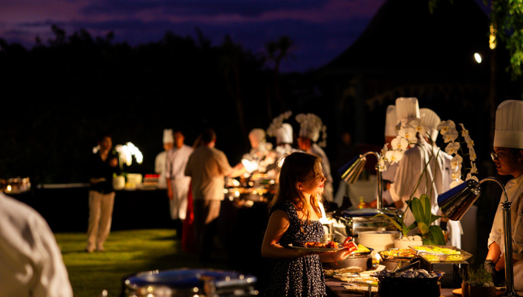 A relaxed afternoon unfolds in a lush Canggu setting, where families gather for playful Easter activities and a generous sunset picnic buffet at Dolan Restaurant...