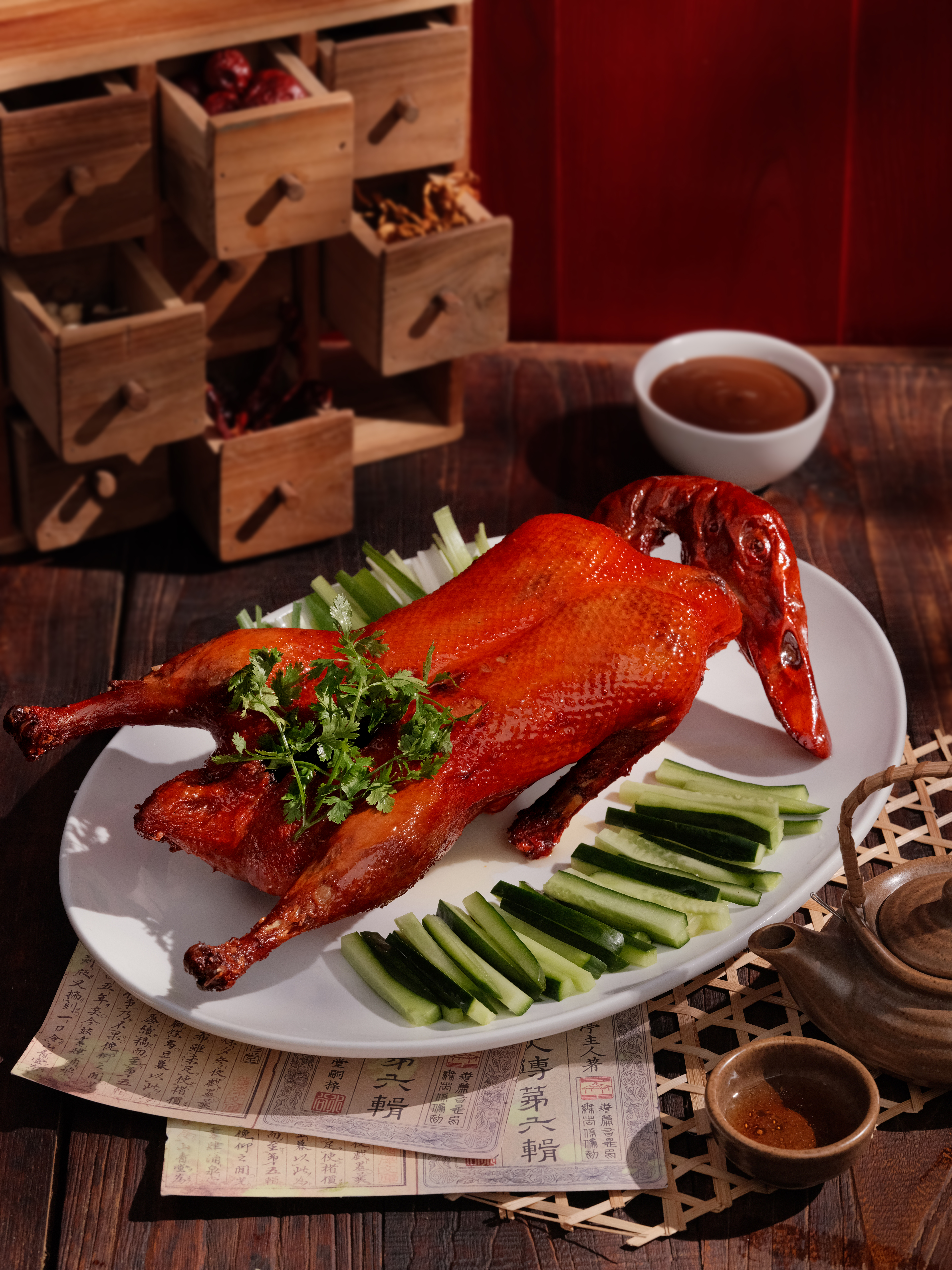 The restaurant’s design mirrors its philosophy. Blending modern oriental architecture with natural elements, Jade River features warm wood, gold accents and soft lighting. It accommodates up to 138 guests completed with an outdoor terrace overlooking lush greenery.
