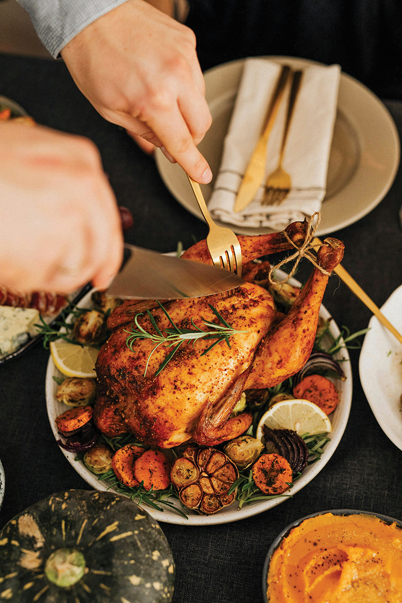Roast turkey has long been a festive centrepiece, gaining popularity in England during the Victorian era. Prepared with herb butter and salt, it is slowly roasted and basted to keep the meat tender while the skin crisps up. Served whole at the table, this Christmas and New Year staple pairs well with stuffing, cranberry sauce, roast vegetables and gravy.