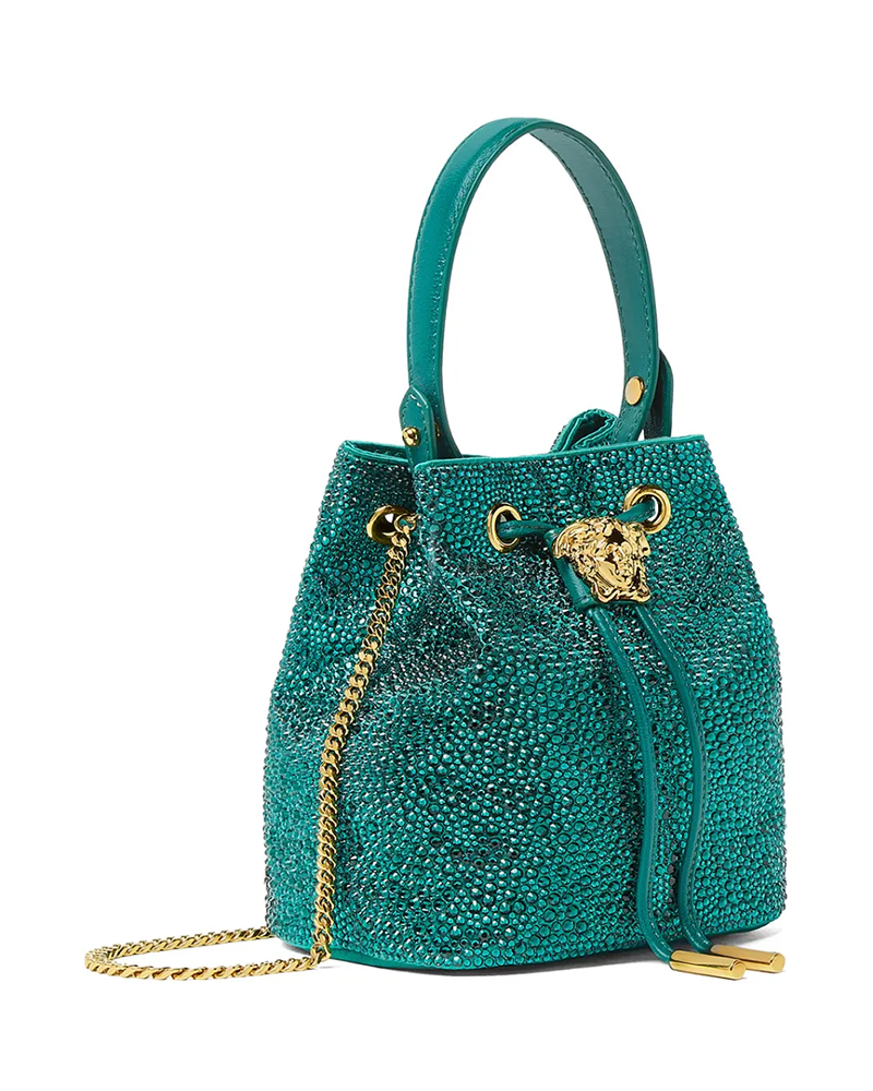 La Medusa Embellished Satin Mini Bucket Bag