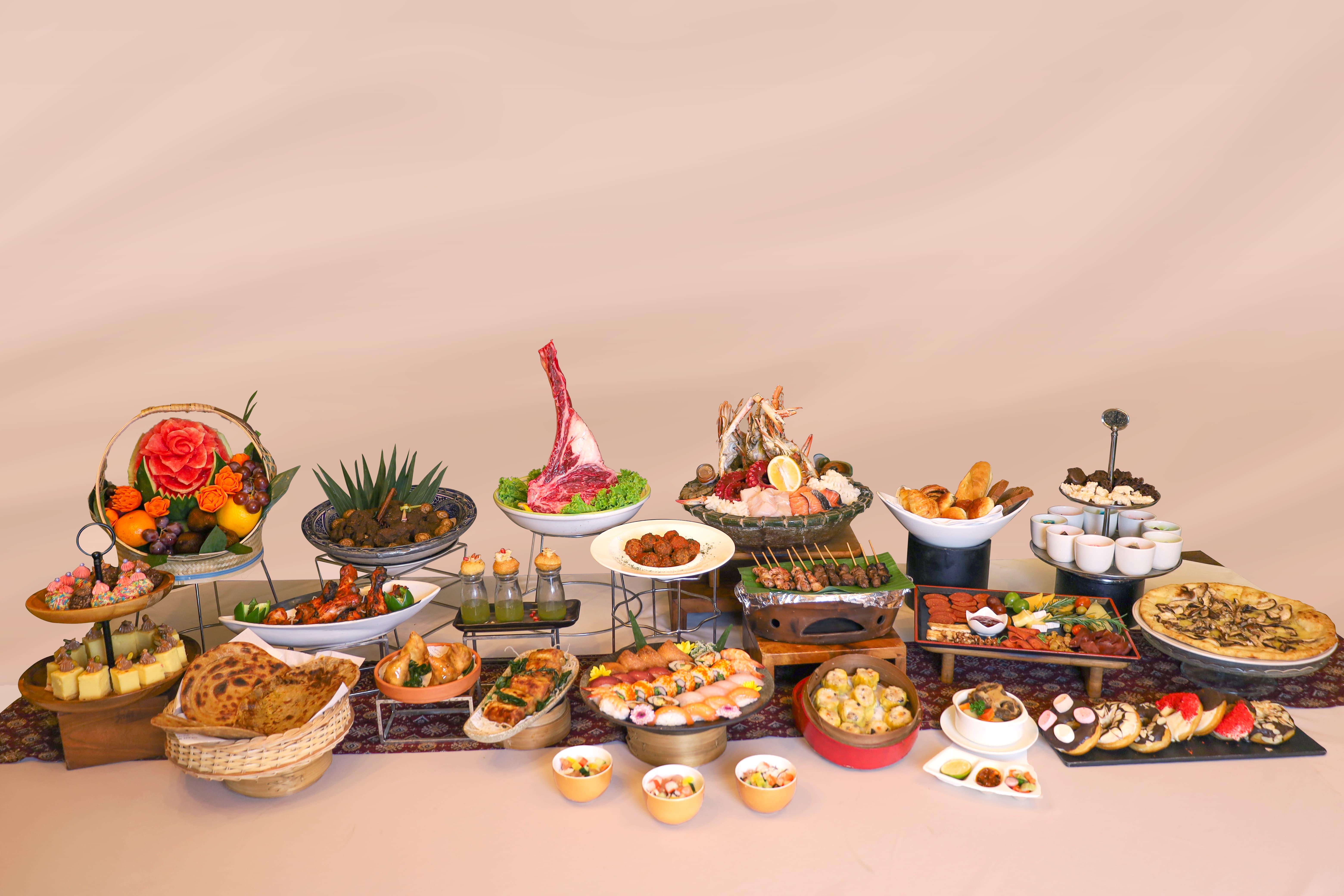 The experience is guided by Executive Chef David Marteau, whose attention to detail shows across every corner of the buffet. The spread begins with a Tomahawk carving station, a favourite among those who enjoy hearty cuts of beef. Alongside it, a seafood station brims with fresh catches, while Indian dishes bring spice and warmth to the table. Chinese dim sum, Japanese sushi, Western classics, and Indonesian favourites like fried rice and oxtail soup add further layers, ensuring guests can move from one culinary culture to another without leaving their seats.