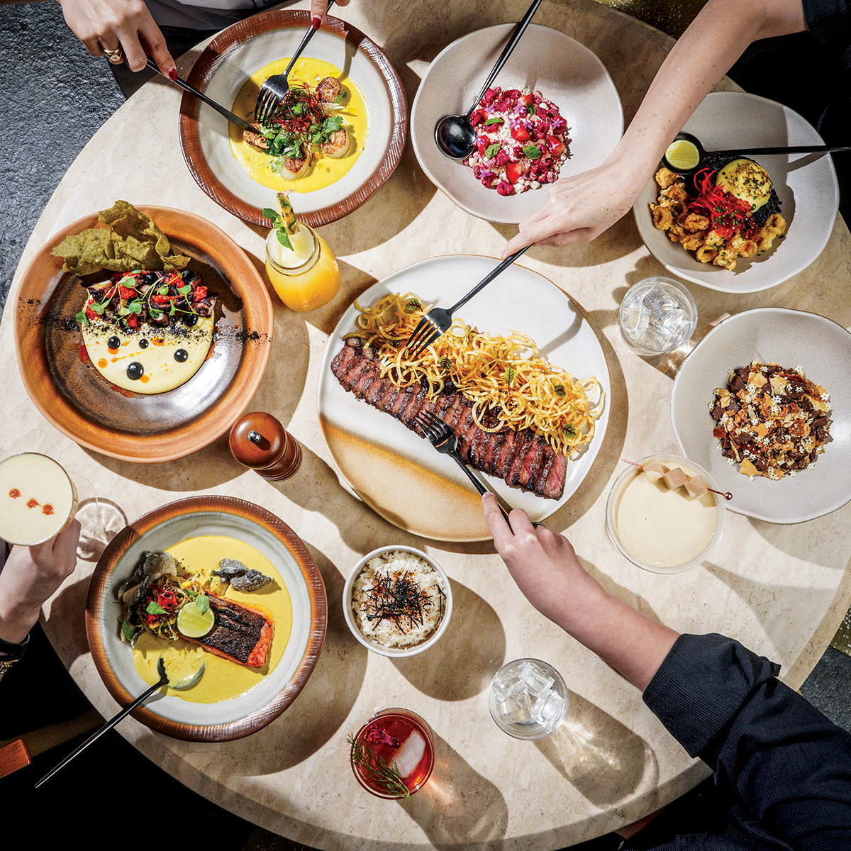 The menu embraces the spirit of sharing, a philosophy that is integral to the restaurant’s identity. Signatures dishes such as squid ink rice, tiger prawn ebiko pasta, octopus a la plancha, and dry-aged wagyu steaks keep regulars coming back. Comforting options like Kilo Campur, Nasi Goreng Rendang and wholesome Kilo Bowls enrich the lunch offerings. The bar serves a range of house cocktails, from the bold Black Mamba to the floral Negroni Blossom, complemented by a carefully curated wine list.